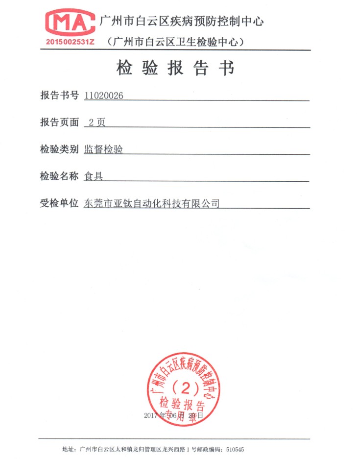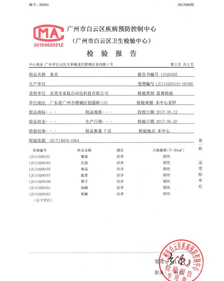 恭喜亞鈦自動化通過廣州市疾病預防控制中心檢驗:真正放心商用洗碗機