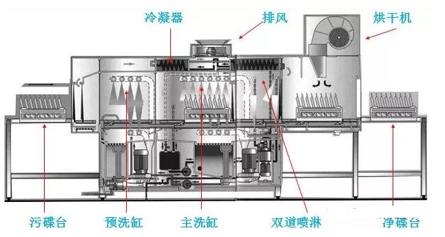 主洗的目的是清除餐具表面的油污,循環水反復噴射,水溫在55℃左右;
