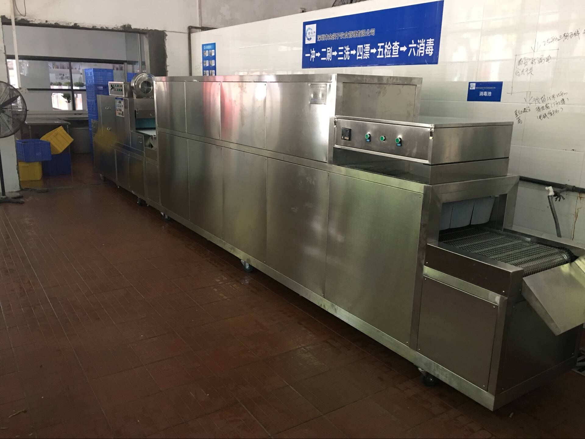 籃傳式全自動(dòng)洗碗機(jī)長(zhǎng)為:8米,寬:1米,高:1.5米,全程操作人數(shù)約為2-3人,可清洗餐具3000套/小時(shí)擺布。機(jī)器規(guī)范可按照詳細(xì)需要不同來(lái)選擇定制。