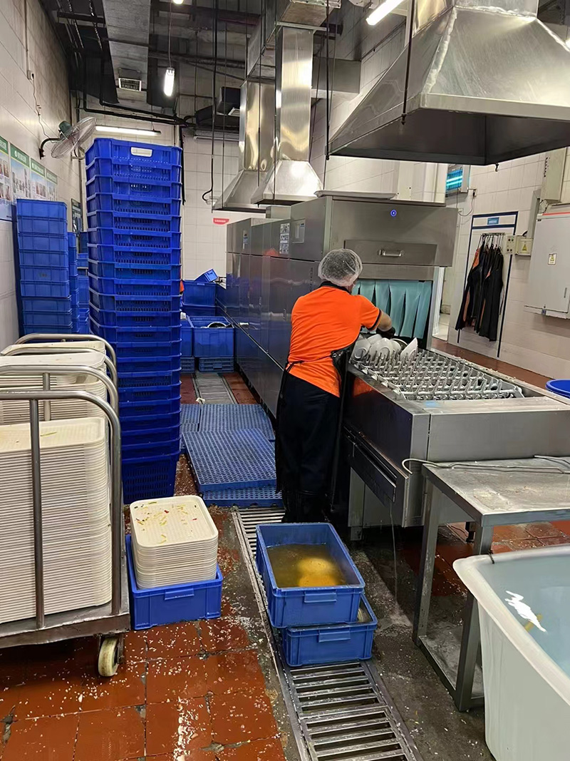洗碗機的使用可以減少廚房內的水漬和泡沫,保持地面干燥,降低了員工滑倒的風險。同時,洗碗機的噪音和蒸汽排放也經過優化設計,能夠為員工提供一個更加舒適和安全的工作環境。