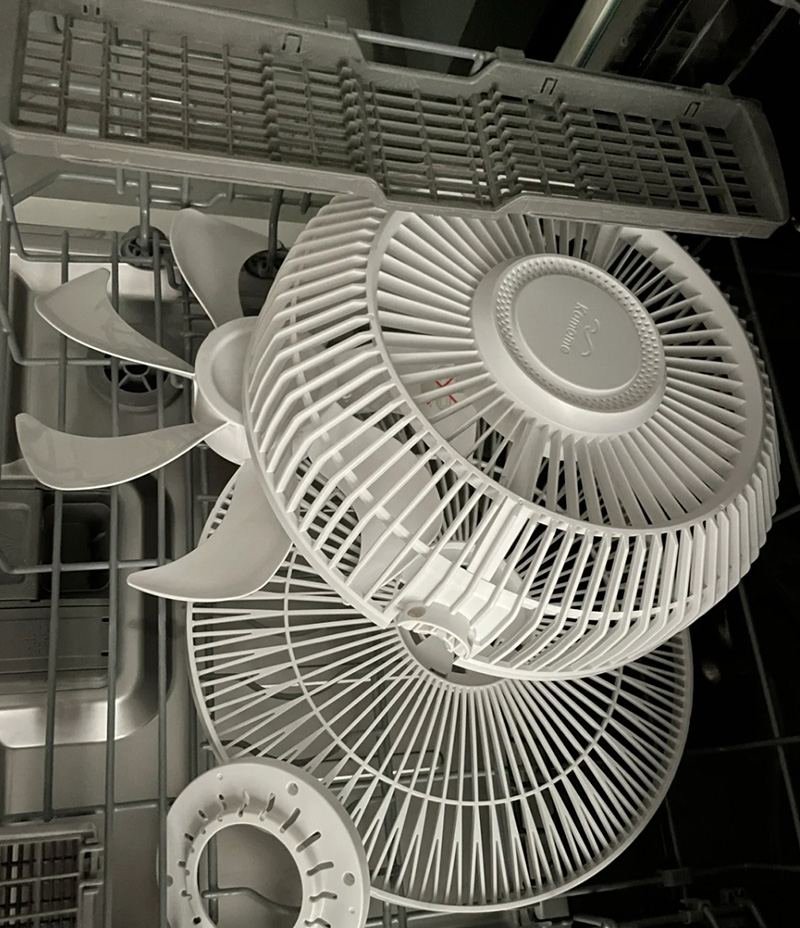 夏天用的風(fēng)扇,扇葉上滿是灰塵,清洗起來特別麻煩。現(xiàn)在,把風(fēng)扇的扇葉拆下來放進(jìn)洗碗機(jī),開個快速清洗程序,風(fēng)扇扇葉就能干凈如新,連那些平時(shí)清潔不到的死角也能清理干凈。