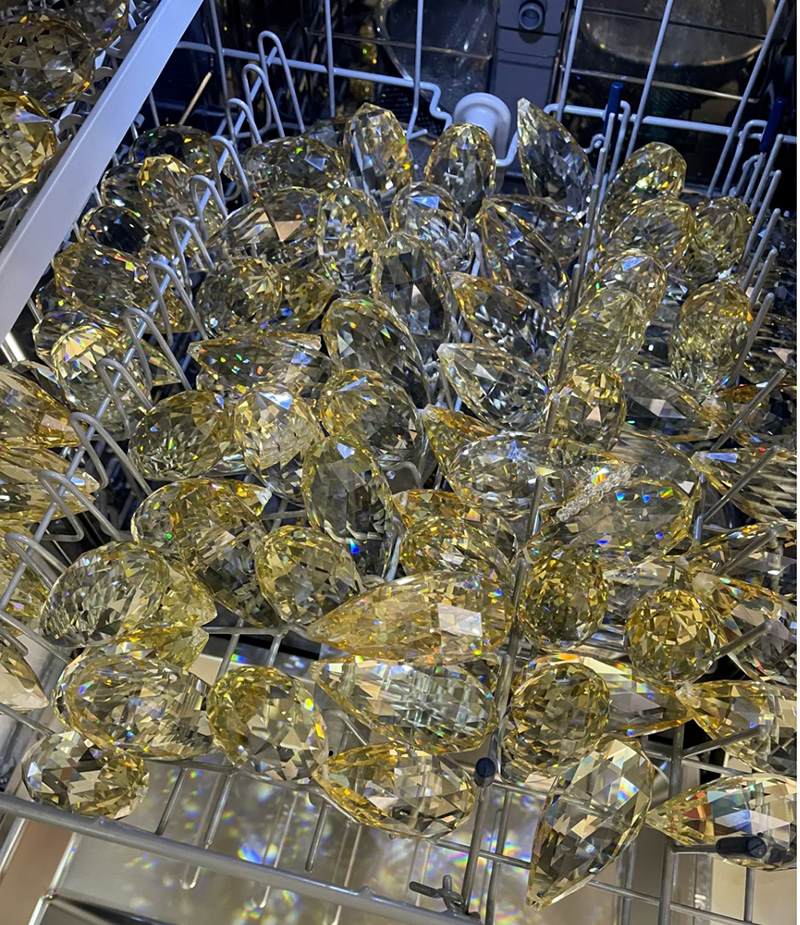 水晶燈看起來漂亮,但每次都要拆下來手洗,實(shí)在麻煩。而洗碗機(jī)恰好能解決這個問題。拆下水晶燈放進(jìn)洗碗機(jī),設(shè)置適合的程序,洗完之后,水晶燈干凈如新,光澤更亮眼。