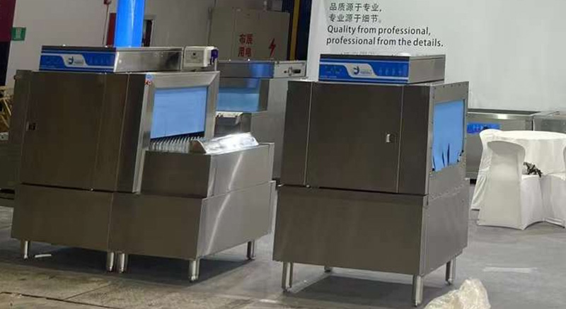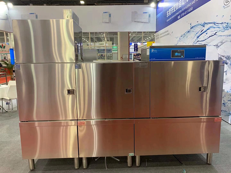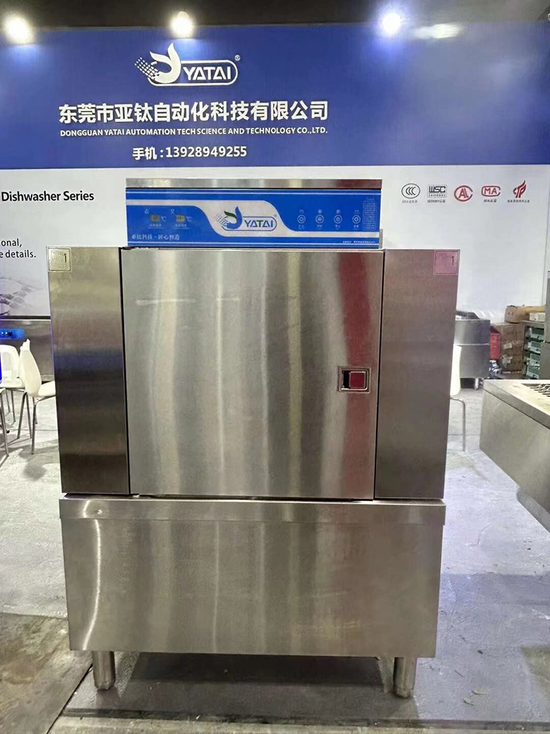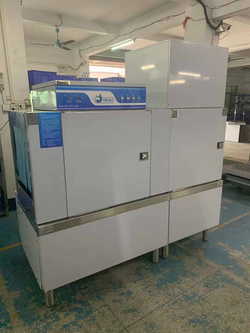 YATAI通道式GYT系列洗碗機,是我公司全面引進德國先進技術,結合中外飲食文化而研發設計的無死角自動清洗設備,采用標準單元組合,標準化加工生產制造。主要由,清洗單元、高溫凈水漂洗消毒單元(85℃)組成。機器清洗后餐具,經衛生部門檢測,各項衛生指標均符合國家相關標準。全機采用優質的不銹鋼板制造,經久耐用。噴嘴采用304不銹鋼一體沖壓扇形噴嘴,噴洗時產生扇形水流,可均勻噴洗餐具表面,保證清洗餐具無死角。餐具口朝下直接斜插放于碗框內推進洗碗機,高壓水直接噴洗餐具表面及內部,不留死角。產品性能穩定,使用成本低,操作簡單,安全易維護。