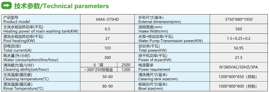 單缸兩道漂洗單烘干平放式洗碗機 MAX-375HD