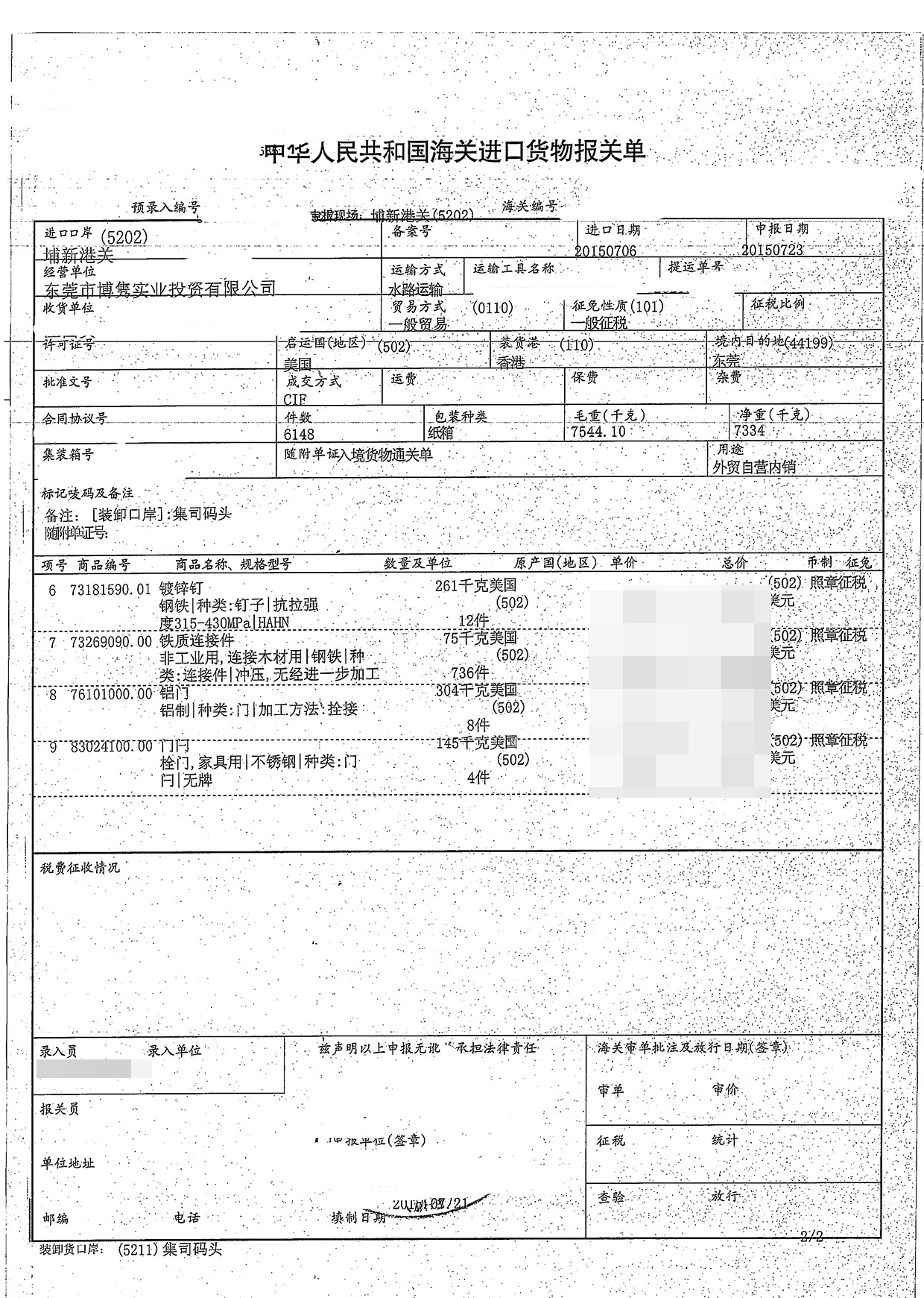 三、五金配件進(jìn)口報(bào)關(guān)案例展示