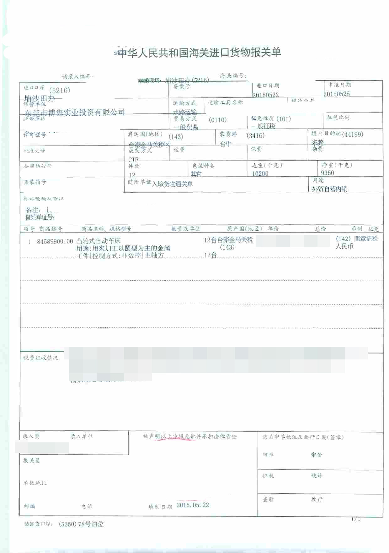 【文章標題】:自動車床進口報關手續及案例【進口知識】 http://www.zsfulin.com/lm7/118.html 轉載請注明出處