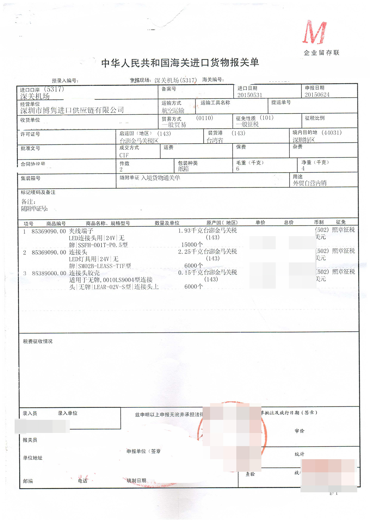 三、連接器進口報關案例展示