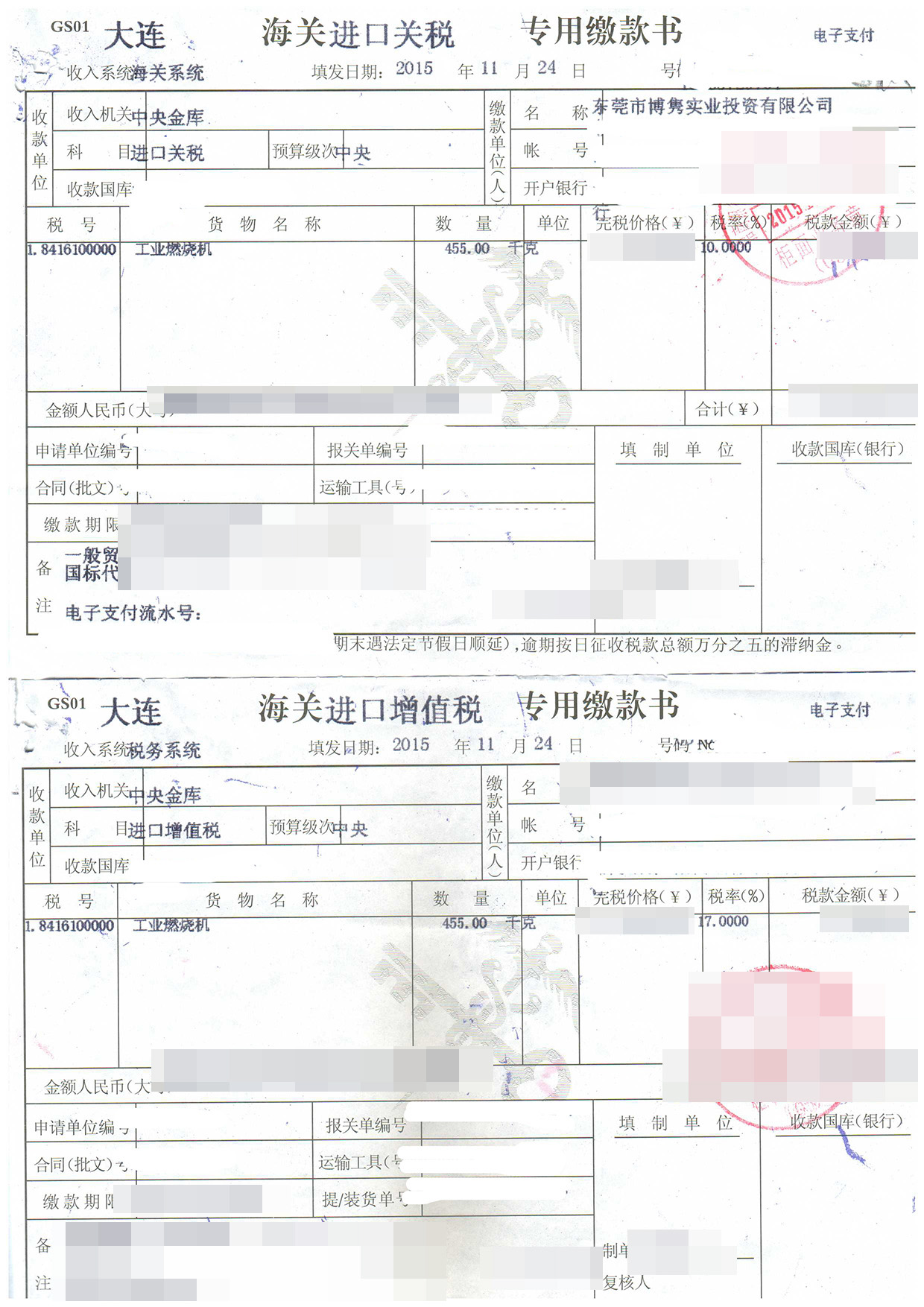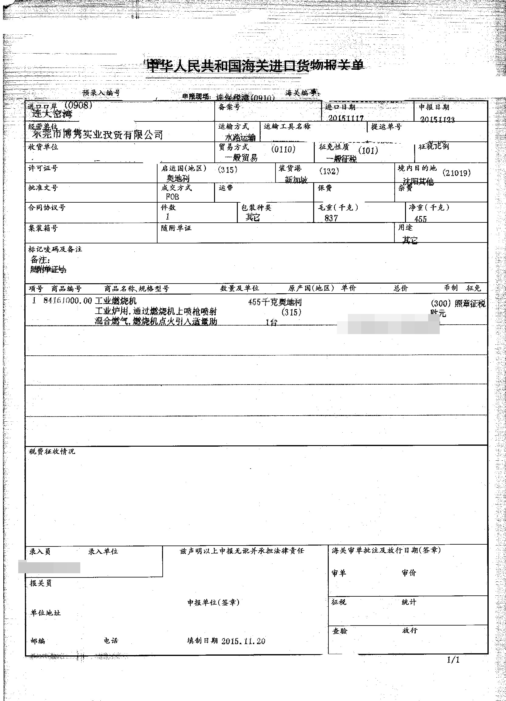 三、工業燃燒機進口報關案例展示