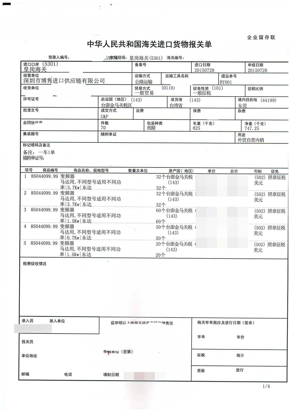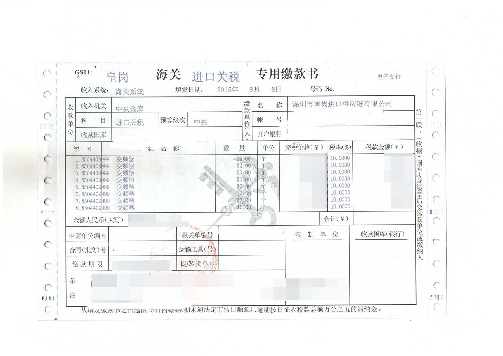 三、變頻器進口報關案例展示