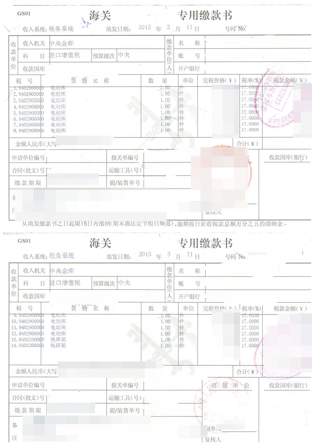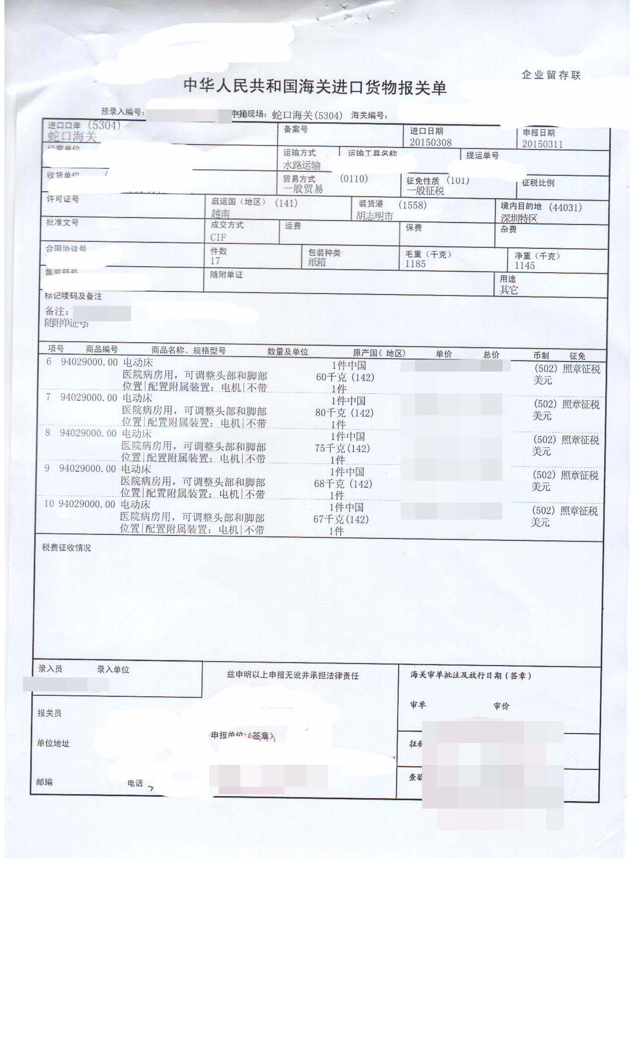 三、電動床進(jìn)口報關(guān)案例展示