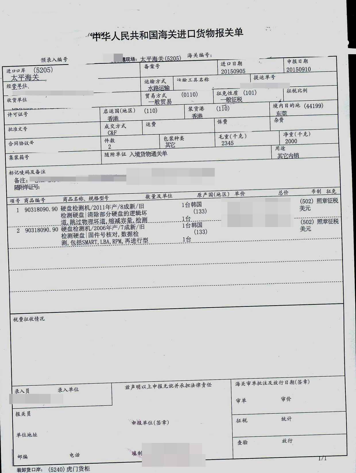 【文章標題】:舊硬盤檢測機進口報關手續及案例【建議收藏】 http://www.zsfulin.com/lm9/77.html 轉載請注明出處