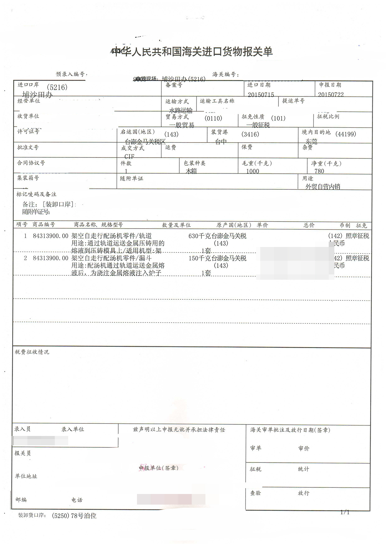壓鑄給湯機(jī)的功能是通過機(jī)械連桿原理來實現(xiàn)從熔爐取合金湯液按理想的軌跡送至壓鑄機(jī)壓射室的動作的機(jī)械設(shè)備。有些壓鑄五連桿給湯機(jī)有滴料功能,能消除鋁液表面的氧化物,有效提高合格率。我司擁有豐富的配湯機(jī)配件進(jìn)口報關(guān)手續(xù)流程及案例,現(xiàn)在為大家詳細(xì)介紹一下關(guān)于配湯機(jī)配件進(jìn)口報關(guān)那些事兒!