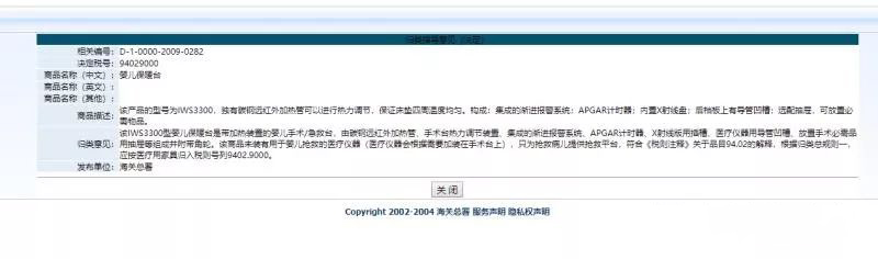 中國海關(guān)認為:保溫臺未裝有醫(yī)療設(shè)備,僅為搶救嬰兒提供搶救平臺,應(yīng)按醫(yī)療用家具歸入品目94.02。