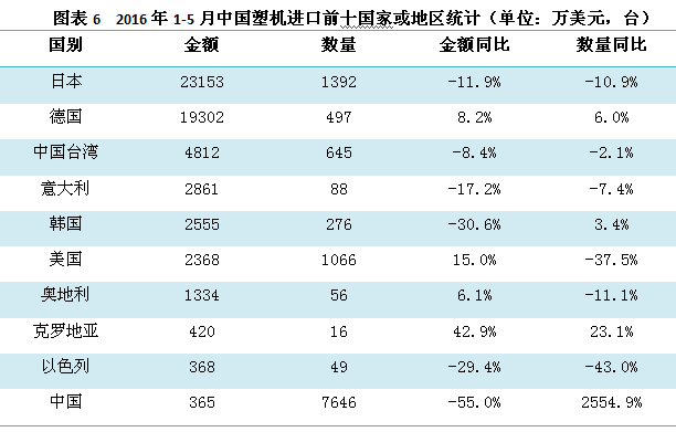 【文章標題】:2016年1-5月中國塑料機械進出口報關雙雙下降 http://www.zsfulin.com/news1/28.html 轉載請注明出處